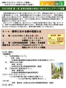 <参加者募集中>2025年度 第1回 生物多様性の保全に向けたネットワーク会議 生物多様性は私たちに様々な恵みをもたらす一方で、普段自然と接することの少ない都市住民にとっては、生物多様性は必ずしも心地 […]