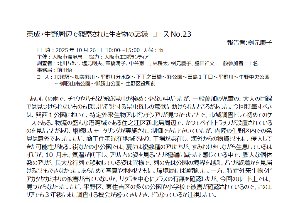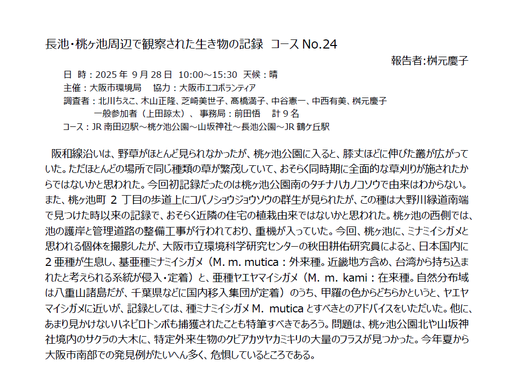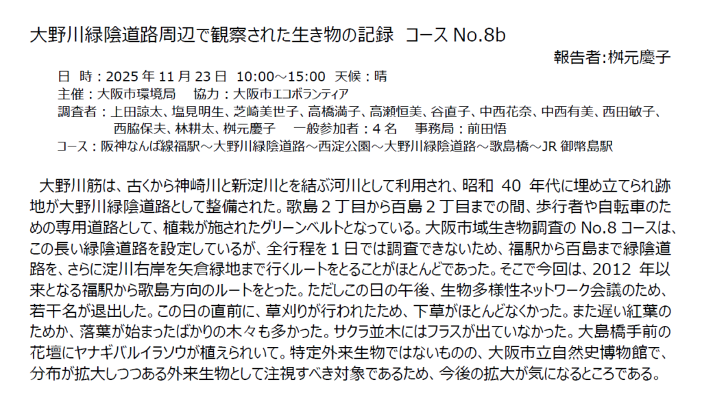2025年度大阪市域生き物調査 参加者募集中