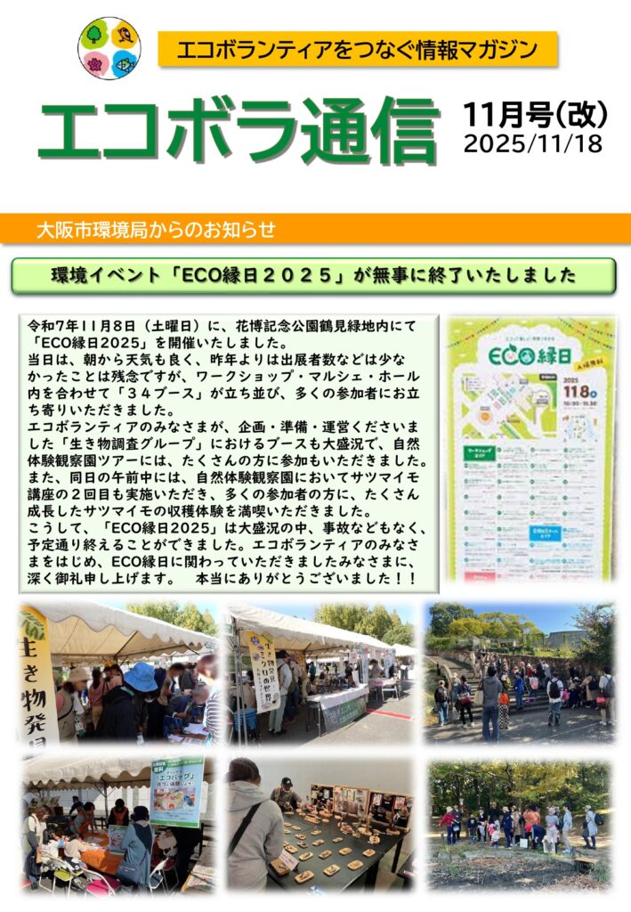 内容として、エコボラ活動の様子・エコボラ会議の報告・各講座の紹介・エコスクエア及び観察園の様子・スタッフ募集の案内などを掲載しています。次のリンクからご覧いただけます。