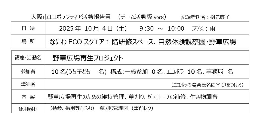 関心を持っていただいた方は、ぜひ大阪市エコボランティアに登録をお願いします。