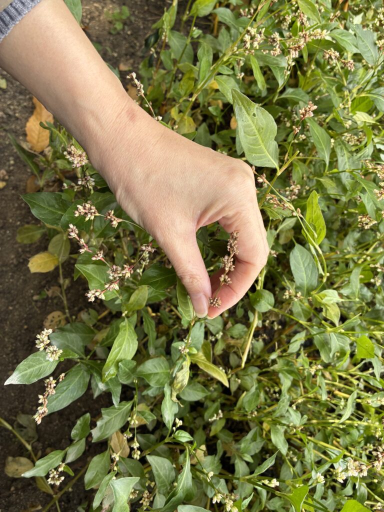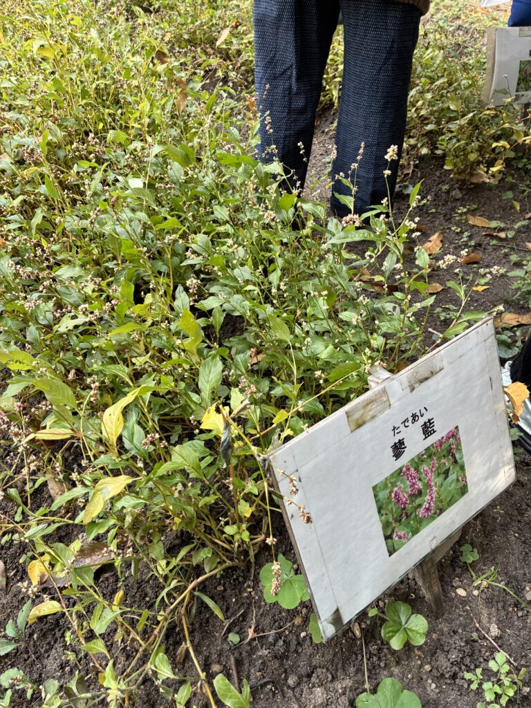 蓼藍の葉を食べに来たと思われる、菱型体形のヒシバッタなどの昆虫も見られました。