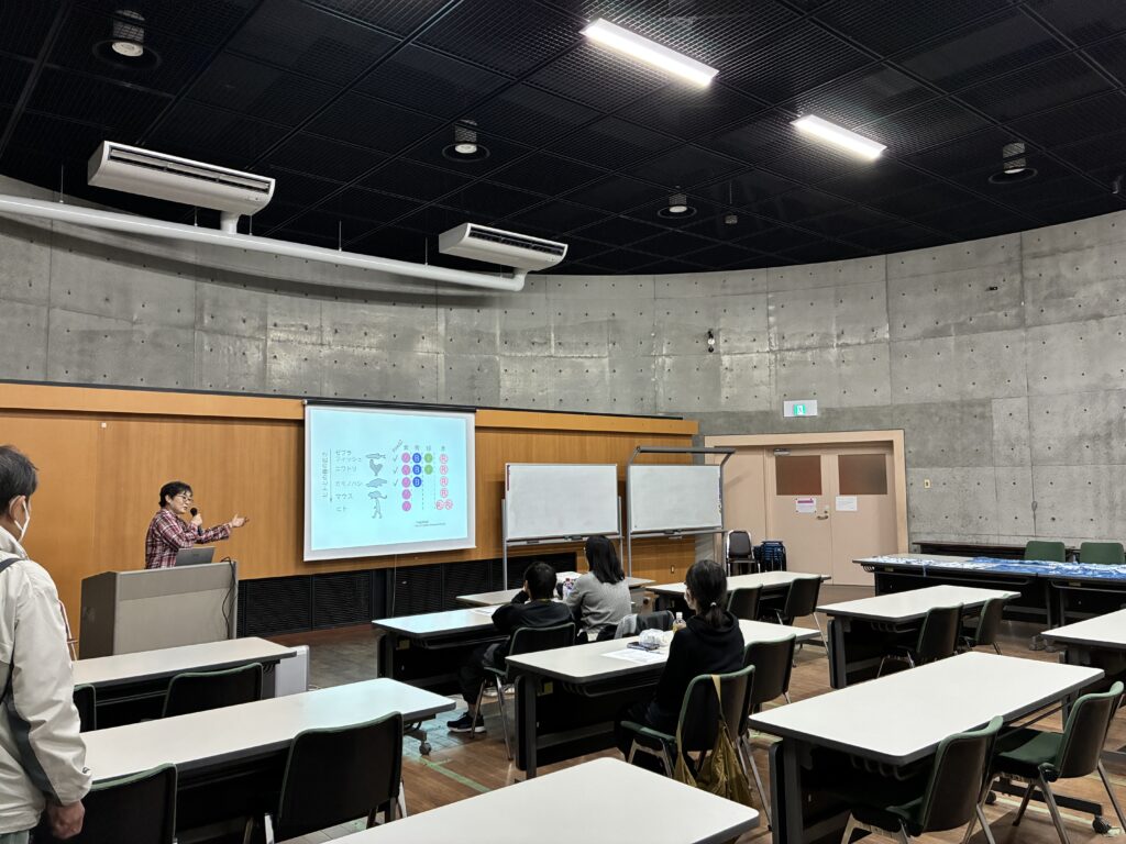 生物は進化によって色の見え方も変わってくるというお話などは、参加者は興味深そうに聞き入っていました。