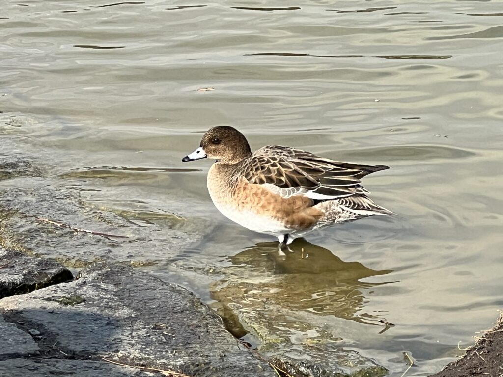 大池では、ユリカモメやカルガモ、オオバン、アオサギなど水辺を好む様々な野鳥が観察できました。