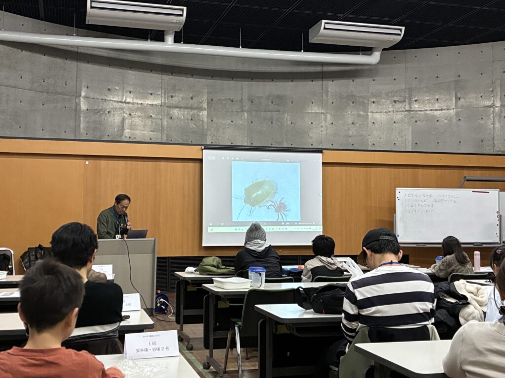 研修室に戻った後は、中谷講師から菰外しで見つかった昆虫についてレクチャーを受けました。最近では菰を使っての防虫・殺虫は益虫をも殺してしまうことが分かり、菰を取り付けるのは風物詩的な意味合いだけになっているとのことです。